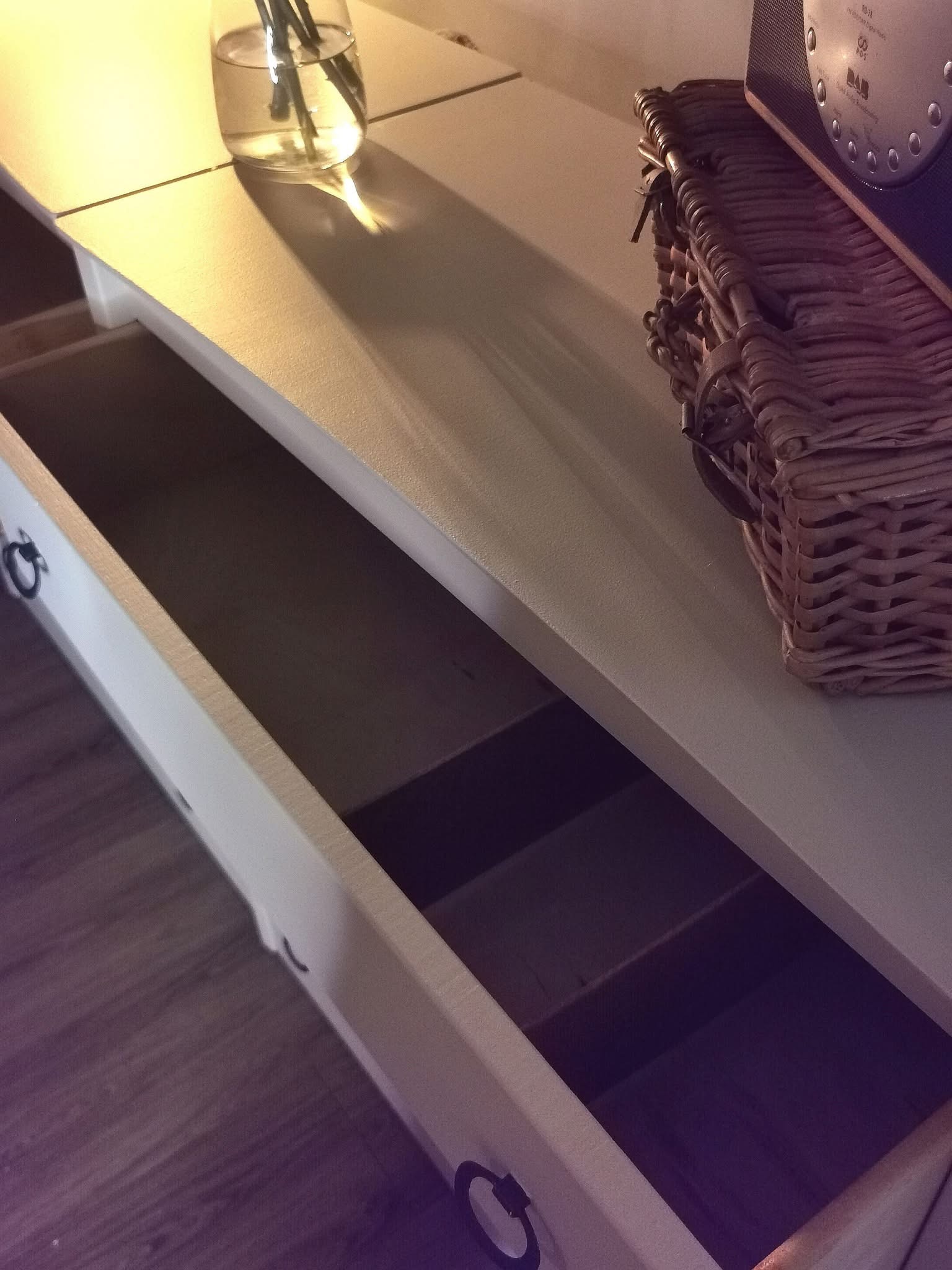 Good quality wooden draws with no flimsy bottoms and spotless.